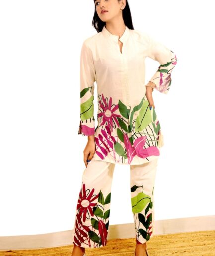Cotton Bloom Floral Co-ord Set – Ivory & Multicolor Print
