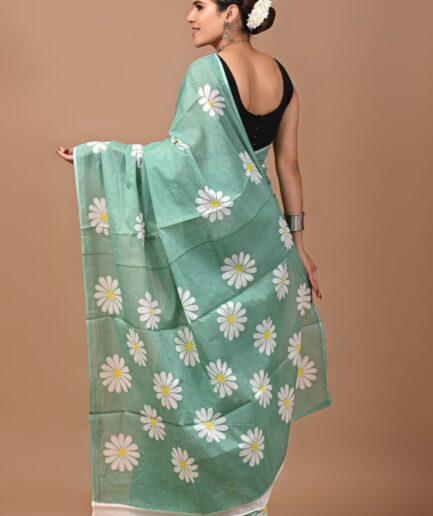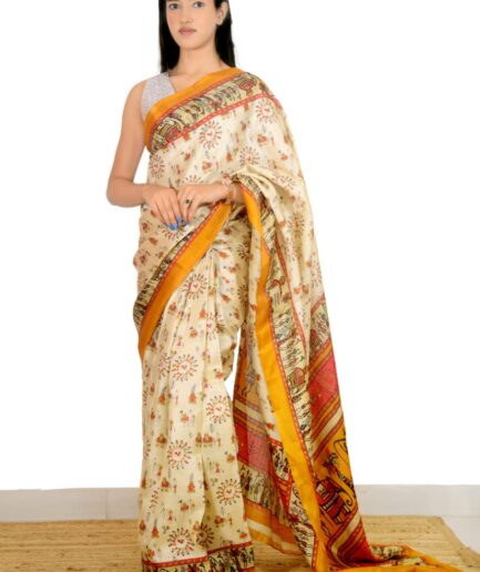• Traditional Cream Printed Cotton Saree with Tribal Art Border56%