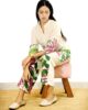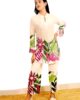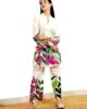 Bottoms: Matching straight-cut pants adorned with the same bold floral print, creating a coordinated yet effortless look.